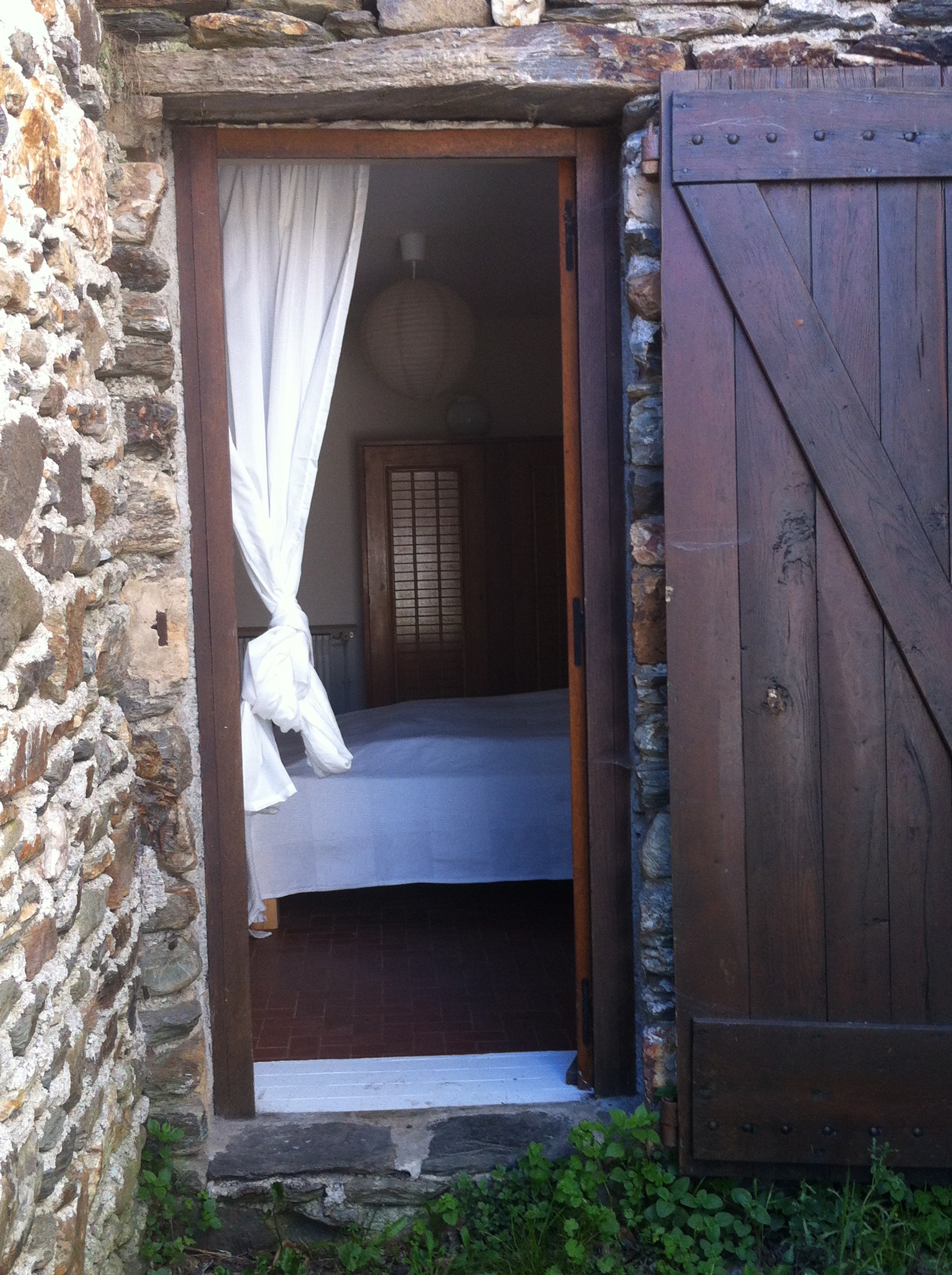 | Depuis la chambre parentale, on accède au jardinet. |